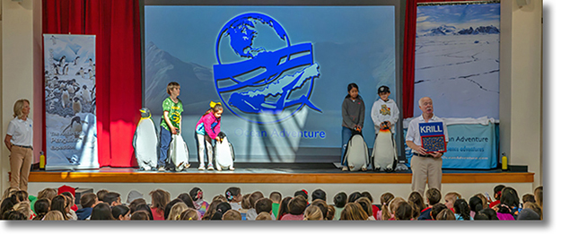 After the demonstrations, Antarctic explorers and guides, Wayne and Karen Brown, then take your students on their thrilling adventure in search of penguins around the frigid White Continent — Antarctica, via an exciting and fast-paced, digital 4K video presentation.